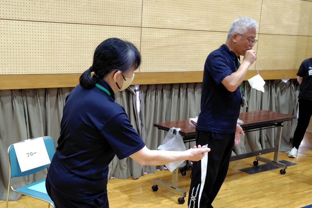 本日行った種類毎に1名のスタッフが付き添い、皆様の体力チェックを行いました。