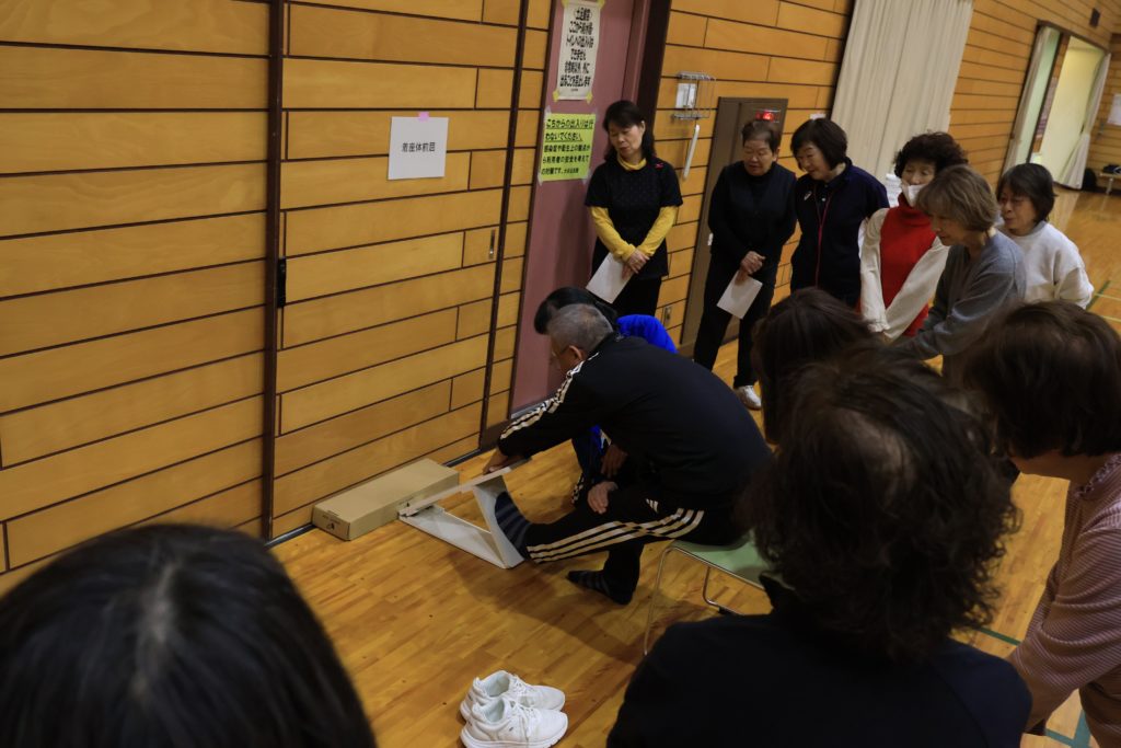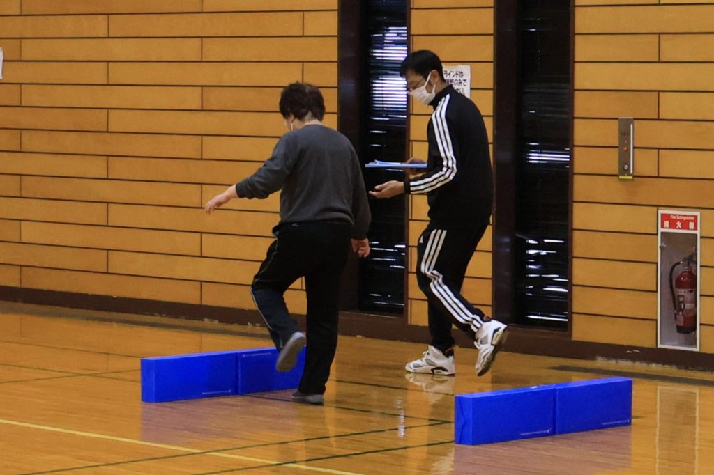 当日は17名の参加のもと、まずはレク式体力チェックを行いました。 参加者の皆様は「体力チェックがあるから今回参加するのは……」と言われていましたが、楽しそうに着座前屈、10m障害物歩行、ファンクショナルリーチ、タオル絞り、ストロー、ツー・ステップを計測されていました。