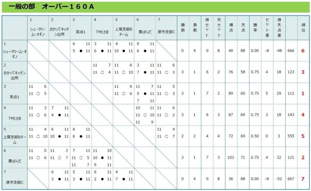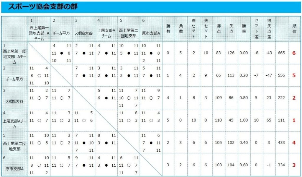 第7回上尾市ミニバレー大会 対戦結果一覧