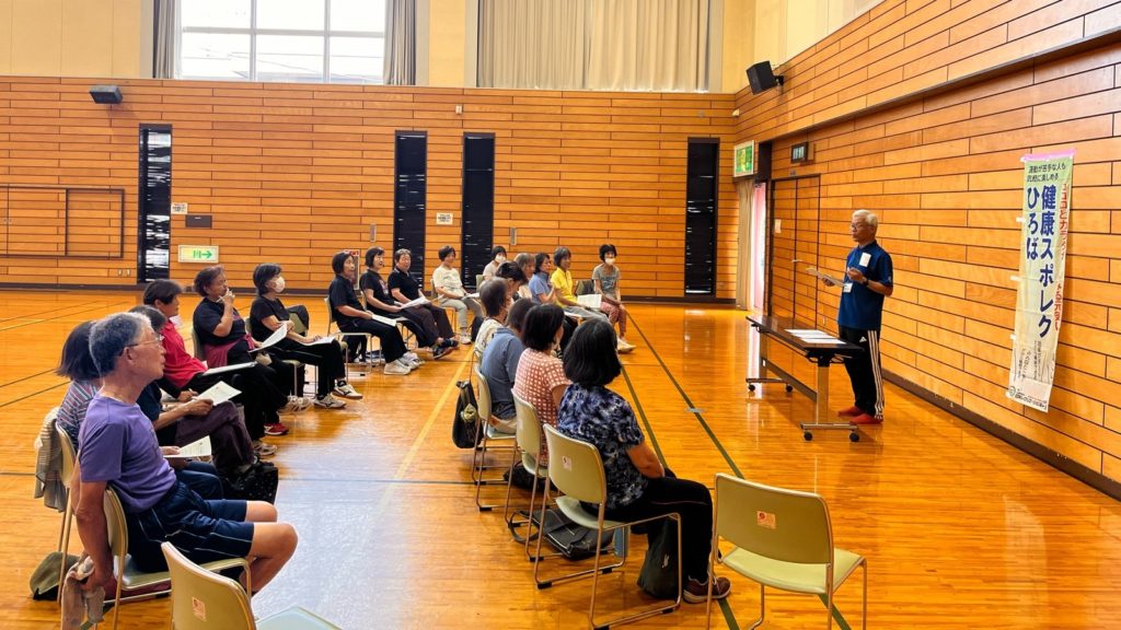 2025年7月10日(木)に大谷公民館で第3回目の「健康スポレクひろば」を開催しました。連日の猛暑の中、22人もの方が参加してくださいました。ありがとうございます。
