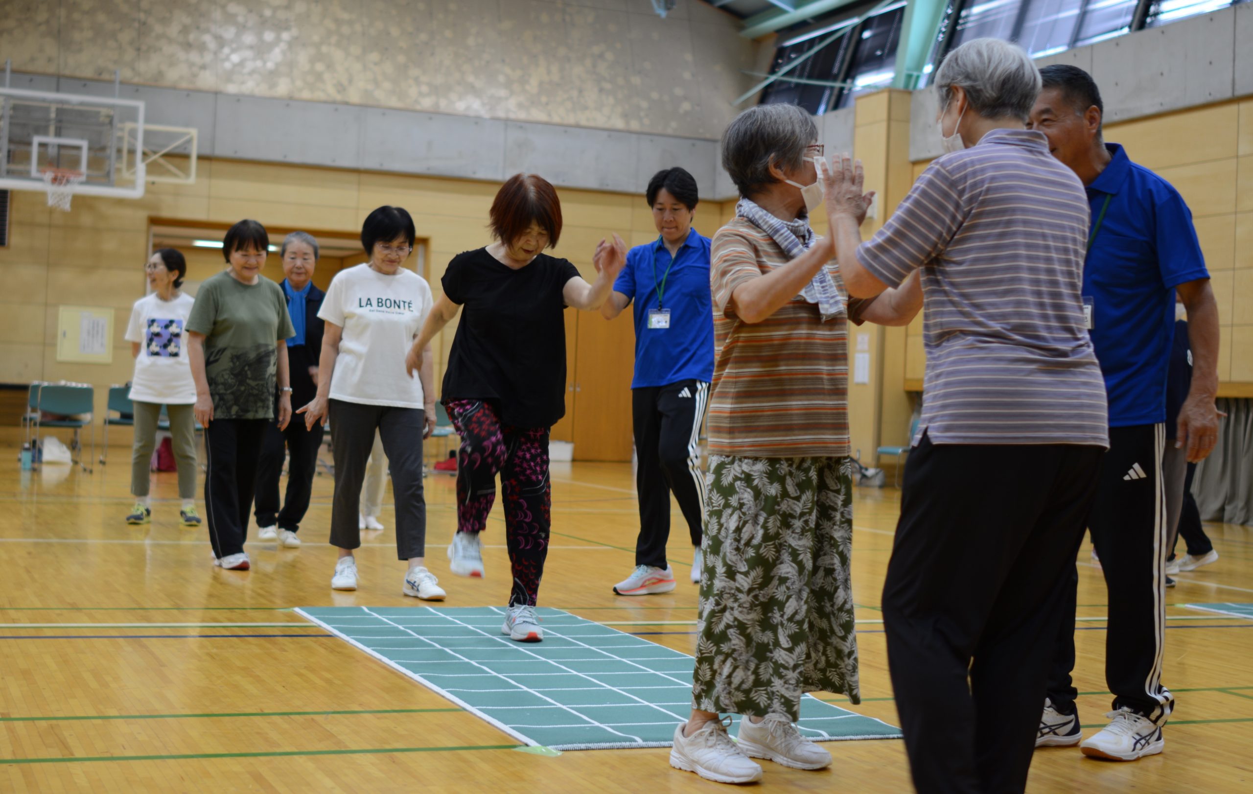 スクエアステップエクササイズでは、歩き終えた後のハイタッチ、マットスでは「エンジョイ、マットス!」という掛け声から始まるなど、参加者全員に一体感が生まれる、とても楽しいイベントでした。