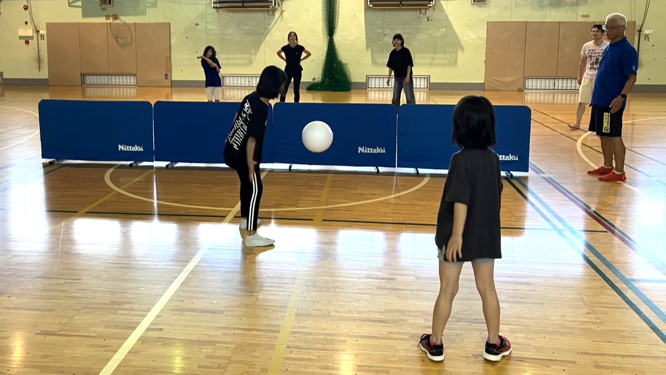 当日はスポーツ推進委員も加わり、3チームによる対抗戦を実施しました。子どもたちも大活躍し、試合は大いに盛り上がりました。競技に慣れるまで苦労する場面もありましたが、参加者の皆さんには楽しんでいただけたと思います。