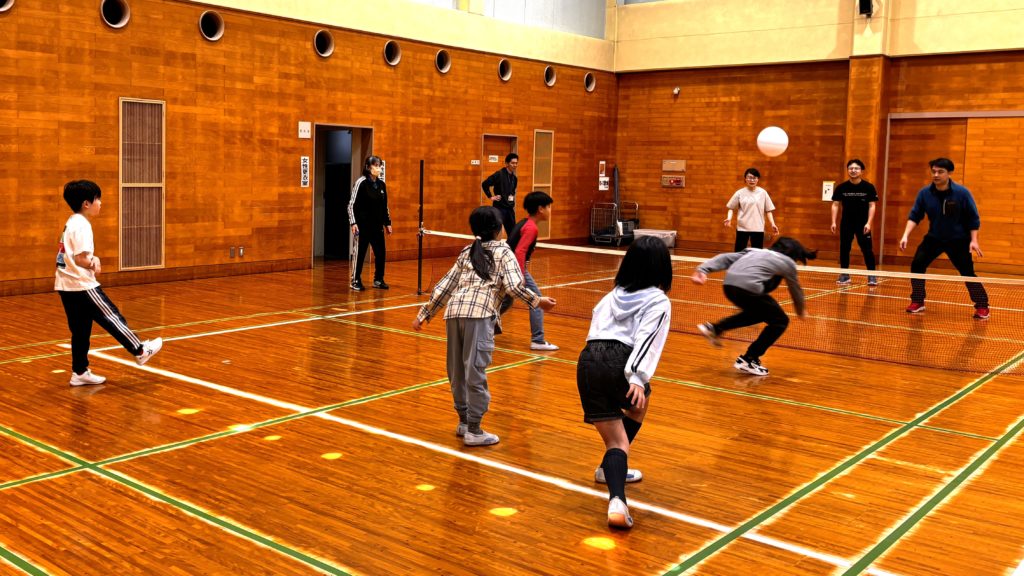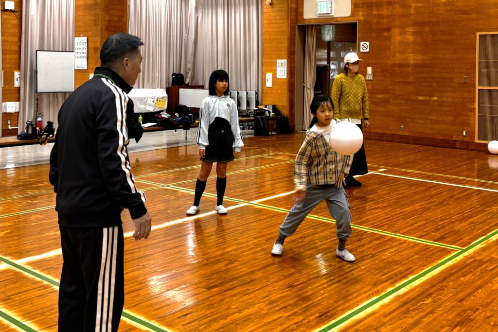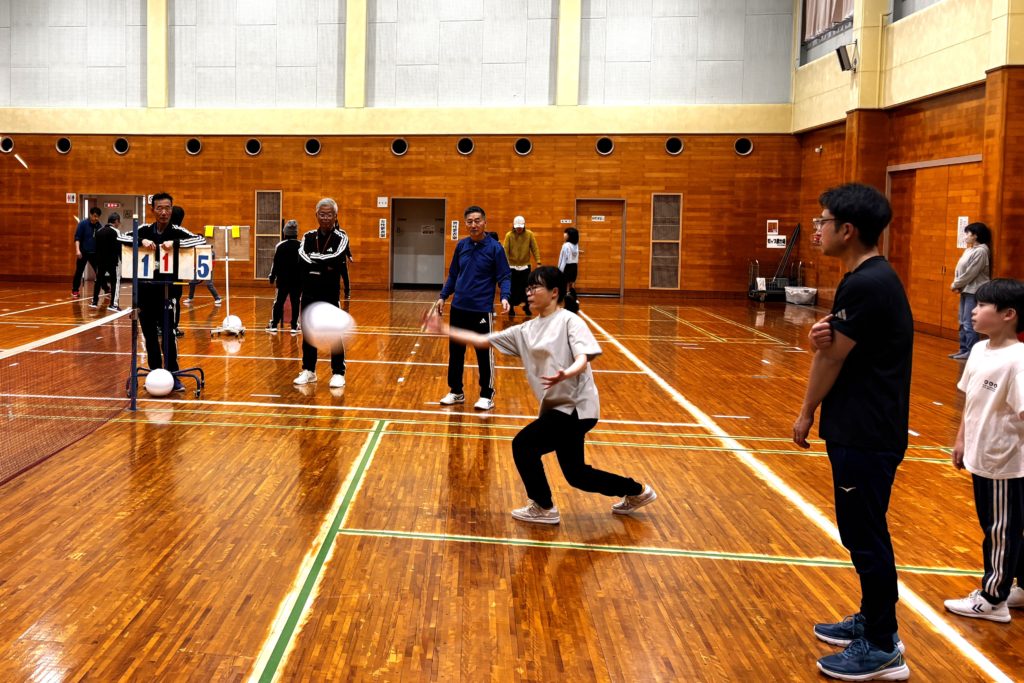 参加者の皆様は、最初は独特なバウンドに苦戦していましたが、徐々にラリーが続くようになると、会場には笑顔と歓声が広がりました。最後には、子どもチームと大人チームによる対戦も行われ、大いに盛り上がりました。