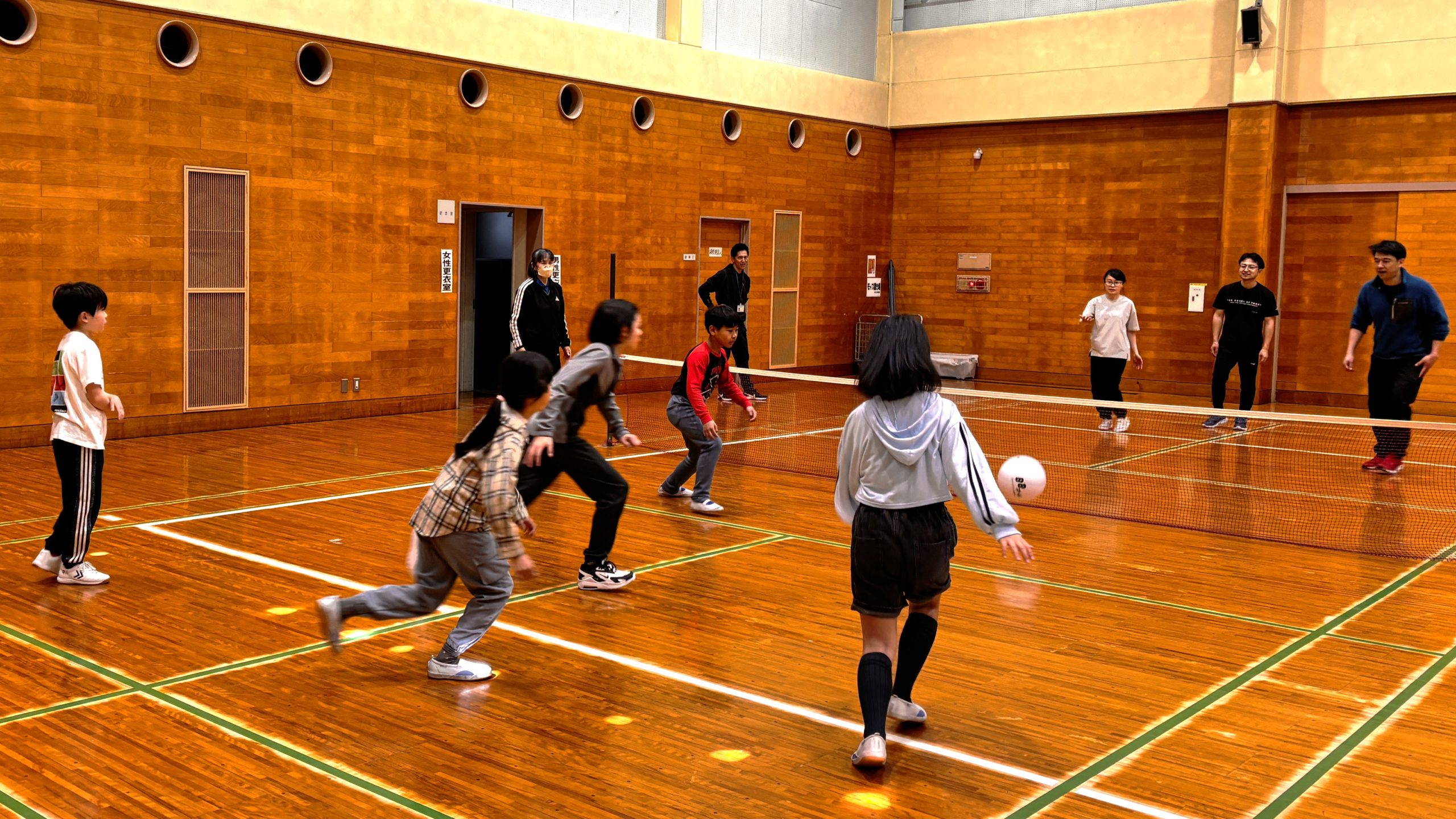 参加者の皆様は、最初は独特なバウンドに苦戦していましたが、徐々にラリーが続くようになると、会場には笑顔と歓声が広がりました。最後には、子どもチームと大人チームによる対戦も行われ、大いに盛り上がりました。